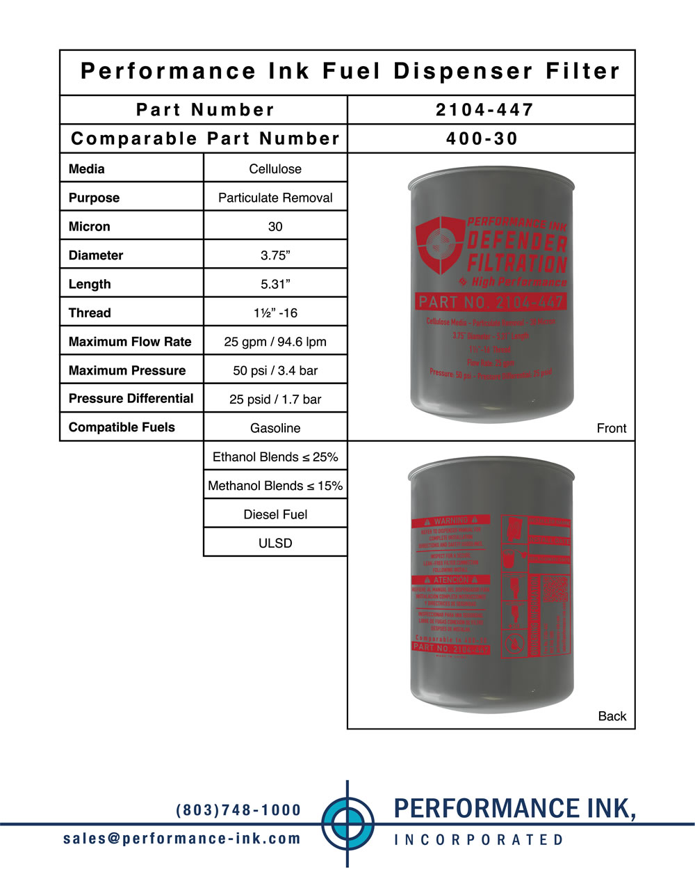 400-30 Micron High Performance Fuel Filter