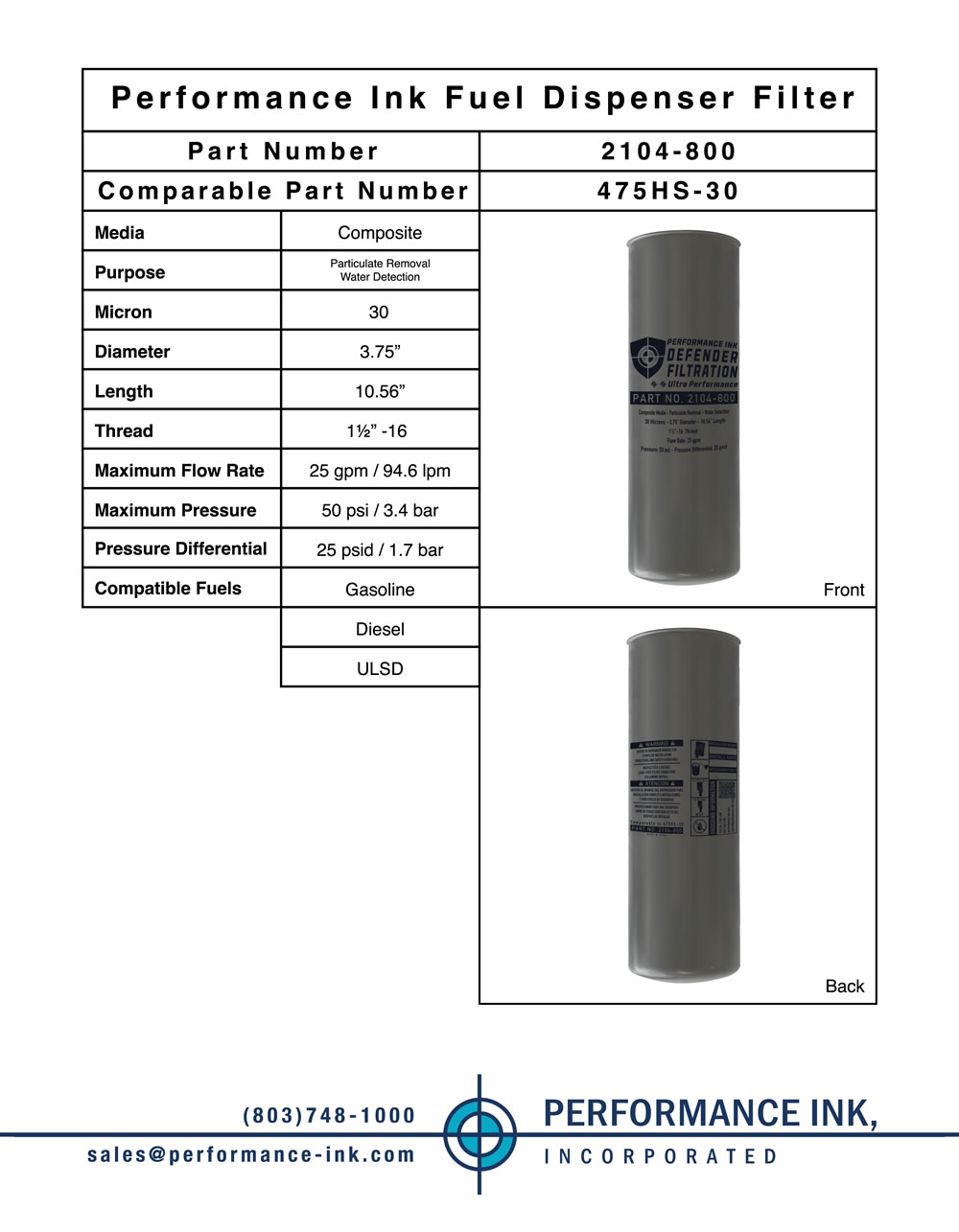 Performance Ink PI-2104-800 475HS-30 Micron Ultra Performance Fuel Filter